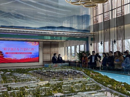 完成規(guī)定動作后,在城控?秀江南項目工作人員的帶領(lǐng)下,全體黨員實地參觀了項目營銷中心、景觀示范區(qū)、星光樂園等現(xiàn)場,詳細了解了項目概況、進展情況及開盤籌備情況,雙方黨員深入交流了黨建和業(yè)務(wù)工作互融互促的先進經(jīng)驗和特色做法。