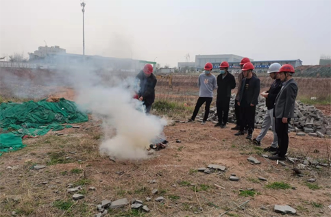 安營(yíng)山二期B區(qū)項(xiàng)目部經(jīng)理就消防安全基本知識(shí)對(duì)現(xiàn)場(chǎng)人員進(jìn)行普及,主要針對(duì)干粉滅火器的使用方法進(jìn)行詳細(xì)的講解和實(shí)操示范。隨后,在場(chǎng)人員進(jìn)行現(xiàn)場(chǎng)演練。此次演練從開(kāi)始到結(jié)束都有條不紊地進(jìn)行,整個(gè)過(guò)程前后銜接連貫,及時(shí)撲滅了大火,取得了預(yù)期效果。