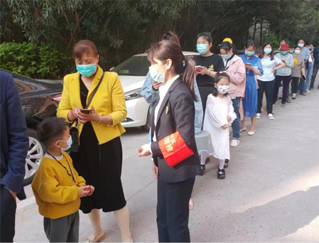 很快檢測點(diǎn)前就排起了長隊(duì),此時的物業(yè)工作人員顧不上渾身疲憊,又馬不停蹄地全力維持現(xiàn)場秩序,引導(dǎo)業(yè)主保持一米距離,并提醒大家提前出示健康碼,面對小區(qū)內(nèi)老年人不會使用手機(jī)的情況,工作人員一一耐心進(jìn)行指導(dǎo)操作。在物業(yè)工作人員的不懈努力下,現(xiàn)場秩序井然,確保了核酸采樣工作快速、高效、有序地開展。盡管忙碌了一上午,他們卻沒有人喊過一聲苦,叫過一聲累,以實(shí)際行動履行了城控物業(yè)人的責(zé)任擔(dān)當(dāng)。