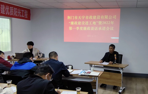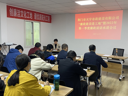 為進(jìn)一步加強(qiáng)工程建設(shè)領(lǐng)域廉政建設(shè)和反腐敗工作,切實(shí)推進(jìn)“清廉企業(yè)”建設(shè),近日,市城控集團(tuán)所屬子公司天宇市政公司組織工程建設(shè)分公司中層干部、施工員及生投路EPC項(xiàng)目相關(guān)工作人員在生投路EPC項(xiàng)目部會(huì)議室召開了“廉政宣講進(jìn)工地”暨2022年第一季度項(xiàng)目管理人員集中廉政談話承諾會(huì)議。