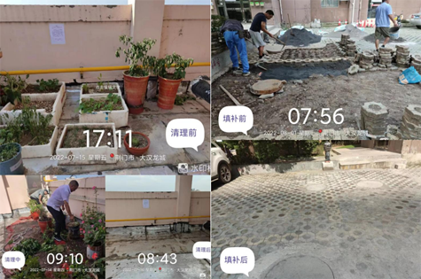 有細(xì)心的業(yè)主發(fā)現(xiàn),小區(qū)1棟2單元西邊停車(chē)位上原本地陷的大坑“不見(jiàn)”了,取而代之的是干凈平整的路面。由于時(shí)間久遠(yuǎn)、地陷等原因,造成小區(qū)1棟的停車(chē)位地面有凹陷。為消除安全隱患,避免對(duì)業(yè)主停車(chē)帶來(lái)不便,物業(yè)工作人員協(xié)調(diào)多方力量,籌措資金對(duì)該路面進(jìn)行修整、補(bǔ)平。此舉得到了小區(qū)業(yè)主的一致稱(chēng)贊。
