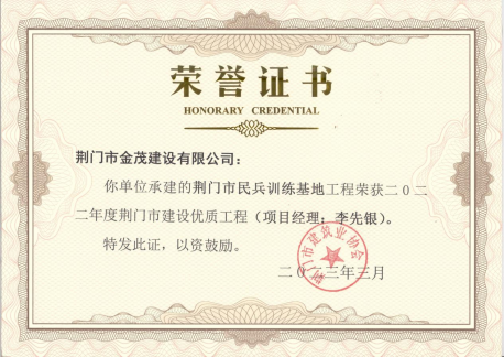 近日,金茂建設(shè)公司傳來喜訊,其承建的市民兵訓(xùn)練基地項目從我市多個項目中脫穎而出,榮獲“2022年度荊門市建設(shè)優(yōu)質(zhì)工程獎”。