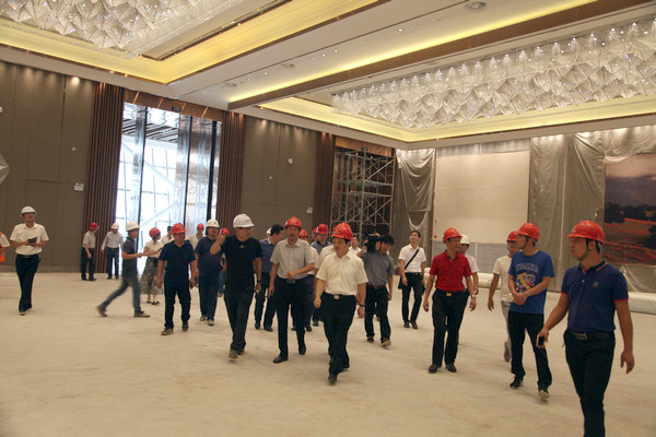9月16日上午,市委副書記、市長張依濤率市直有關(guān)部門及漳河新區(qū)負(fù)責(zé)人,現(xiàn)場調(diào)研荊門綠色生態(tài)科技產(chǎn)業(yè)城國際會(huì)展中心建設(shè)項(xiàng)目。市委常委、市政府黨組成員趙俊,市委常委、市委秘書長廖明國,副市長董煜華,市政府秘書長何平參加調(diào)研。 張依濤詳細(xì)了解了項(xiàng)目建設(shè)情況,并現(xiàn)場辦公,協(xié)調(diào)解決項(xiàng)目建設(shè)中存在的困難和問題。張依濤要求,荊門城建集團(tuán)及各參建單位要進(jìn)一步優(yōu)化施工方案,在保證質(zhì)量和施工安全的前提下,千方百計(jì)加快建設(shè)進(jìn)度,全力以赴、扎實(shí)有序做好國際會(huì)展中心各項(xiàng)收尾工作,確保按期高質(zhì)量完成工程建設(shè)任務(wù),以優(yōu)異成績迎接2017年中國新型城市論壇荊門峰會(huì)和黨的十九大勝利召開。 市城控集團(tuán)董事長杜佐鵬,市城控集團(tuán)總經(jīng)理、荊門城建集團(tuán)董事長豐金亮,市城控集團(tuán)副總經(jīng)理、荊門生態(tài)科技城投資有限公司董事長張杰,荊門城建集團(tuán)副總經(jīng)理、荊門生態(tài)科技城投資有限公司副總經(jīng)理文東升,深圳建科院項(xiàng)目負(fù)責(zé)人、荊門玖伊園科技有限公司常務(wù)副總經(jīng)理何聯(lián)濤,以及施工、監(jiān)理等單位負(fù)責(zé)人陪同調(diào)研。(文、圖:鄔競超)