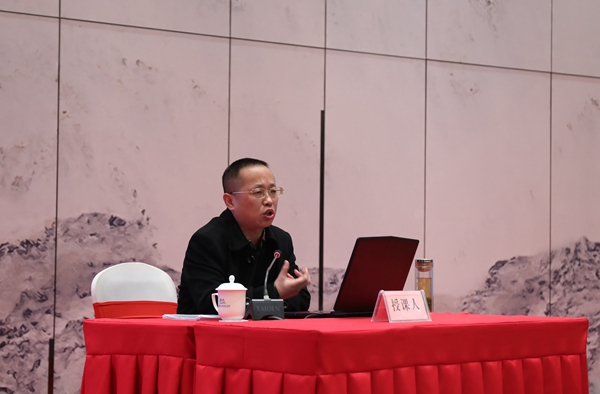 圖為城控集團(tuán)黨委委員、副總經(jīng)理江泉作資產(chǎn)經(jīng)營(yíng)的理論與實(shí)踐專題講課