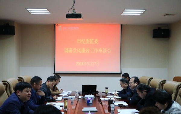 圖為市紀委、監(jiān)委調(diào)研黨風廉政工作座談會現(xiàn)場