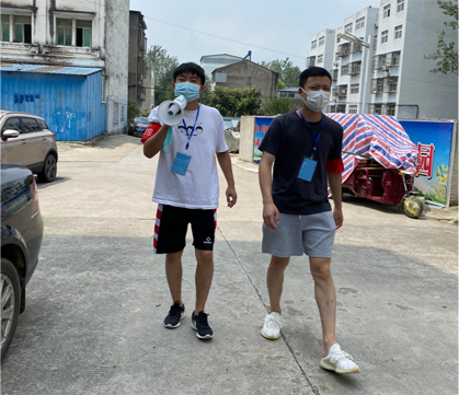 志愿者史若宇、劉凌霄在烈日下進(jìn)行街道小區(qū)巡邏