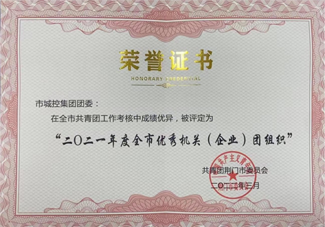 近日,共青團(tuán)荊門市委隆重召開共青團(tuán)荊門市委八屆五次全體(擴(kuò)大)會(huì)議。會(huì)上總結(jié)了2021年度全市共青團(tuán)相關(guān)工作,通報(bào)了年度考核情況,市城控集團(tuán)榮獲2021年度全市優(yōu)秀團(tuán)組織榮譽(yù)稱號(hào)。