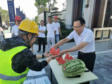 張本華帶領(lǐng)園林建設(shè)集團(tuán)班子成員深入秀江南、三國文化創(chuàng)意產(chǎn)業(yè)園項目現(xiàn)場,慰問一線施工人員,發(fā)放礦泉水、西瓜等防暑降溫物品,并認(rèn)真察看項目建設(shè)情況,詳細(xì)了解基層群眾工作狀況。張本華對一線工作人員辛勤付出給予高度贊揚(yáng),并要求項目負(fù)責(zé)同志在嚴(yán)格落實施工建設(shè)任務(wù)的同時,認(rèn)真做好防暑保障措施,儲備發(fā)放防暑救護(hù)應(yīng)急藥品,彈性安排作息時間,增強(qiáng)自我防護(hù)意識,切實保障職工生產(chǎn)安全和身體健康。