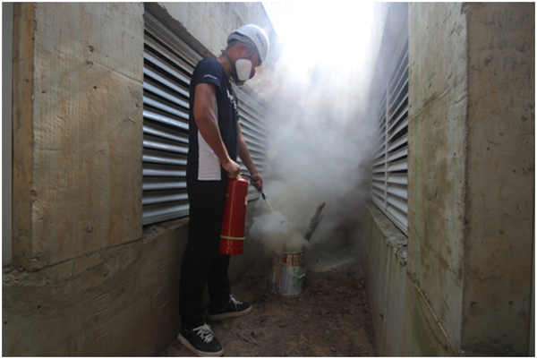 活動一開始,管廊公司管理人員講解了管廊消防安全知識,強調(diào)了管線入廊安全注意事項,演示了防毒面具、氣體檢測儀、對講機、干粉滅火器等器械的使用方法。隨后在綜合管廊內(nèi)部進(jìn)行了消防應(yīng)急演練,模擬管廊內(nèi)部起火,管廊公司立即啟動應(yīng)急預(yù)案,疏散現(xiàn)場作業(yè)人員,并使用滅火器進(jìn)行滅火。
