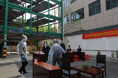 演練中,工作人員現(xiàn)場演示了辦公場所消毒通風(fēng)、上下班體溫監(jiān)測、來訪人員體溫檢測、登記等日常辦公流程。模擬了員工在上班途中身體不適,工作人員再對其進(jìn)行體溫檢測發(fā)現(xiàn)異常后,隨即啟動疫情應(yīng)急處置預(yù)案,將其安排至隔離室再次使用水銀體溫計腋下測試,確認(rèn)體溫異常后聯(lián)系120急救人員送發(fā)熱門診就醫(yī),同時對密切接觸人員逐一排查,對辦公場所進(jìn)行消毒殺菌,并將有關(guān)情況報上級部門。