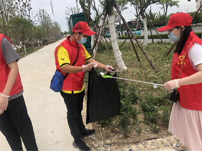 活動(dòng)現(xiàn)場(chǎng),20多名志愿者身穿志愿者紅色馬甲,頭戴志愿者紅色帽子,他們高舉司旗和志愿者旗幟,現(xiàn)場(chǎng)猶如一片片火紅的云彩鑲嵌在場(chǎng)館周圍,這一抹“志愿紅”和志愿者們的勞動(dòng)熱情把現(xiàn)場(chǎng)妝點(diǎn)得格外靚麗多彩。志愿者們手拿鉗子、垃圾袋,推著兩輪斗車,撿拾綠化帶中的白色垃圾、搬運(yùn)現(xiàn)場(chǎng)廢棄建筑材料。他們分為兩組,分工明確,密切協(xié)作,沿著場(chǎng)館周圍地毯式搜尋前進(jìn),不放過任何一處死角。志愿者們不怕臟、不怕累,發(fā)揚(yáng)吃苦耐勞精神,個(gè)個(gè)干得歡快自如,熱情高漲,勞動(dòng)現(xiàn)場(chǎng)不時(shí)傳來(lái)一陣陣歡聲笑語(yǔ)。經(jīng)過兩個(gè)小時(shí)的奮戰(zhàn),場(chǎng)館外圍公共區(qū)域的雜物和綠化帶中的白色垃圾被大家清理得干干凈凈,整個(gè)項(xiàng)目現(xiàn)場(chǎng)干凈整潔,給人煥然一新的感覺。