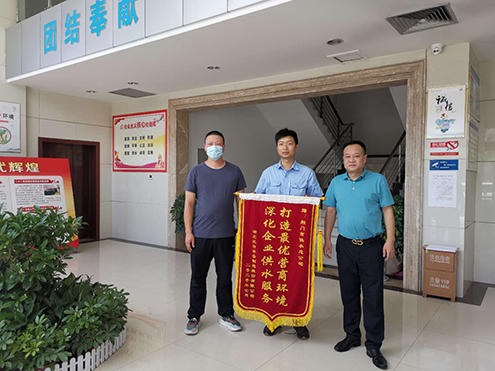 “感謝市供水總公司解決廠區(qū)管道漏水的大難題,你們辛苦了!”8月3日下午,湖北航特裝備制造股份有限公司(以下簡(jiǎn)稱航特公司)相關(guān)負(fù)責(zé)人將一面印有“打造最優(yōu)營(yíng)商環(huán)境 深化企業(yè)供水服務(wù)”的鮮艷錦旗送到市城控集團(tuán)所屬市供水總公司。